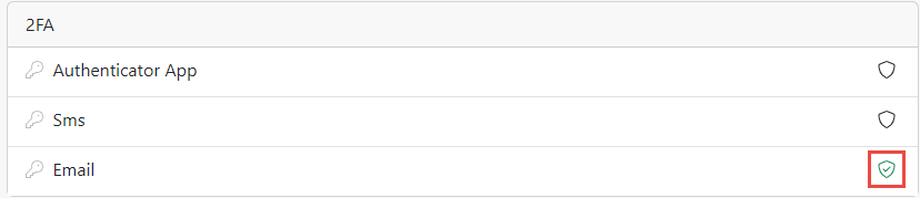 3. You preferred option for MFA will be highlighted with a green icon and a tick: