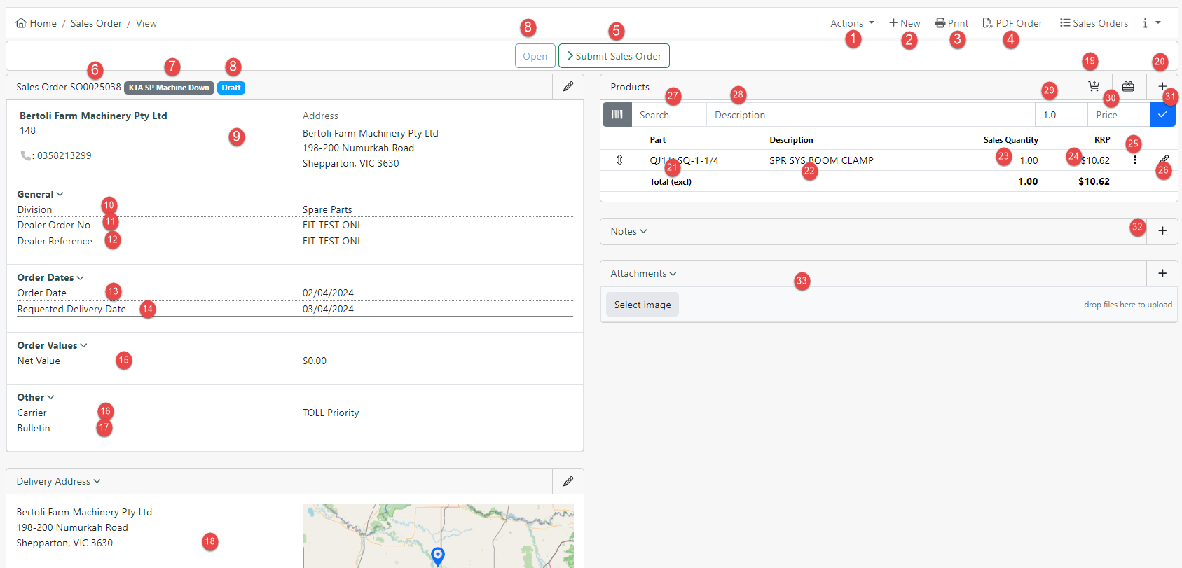 | 5 | Submit order | When finished creating the order click submit order button. After performing this KTA can now fulfil the order. No further edits will be allowed. |