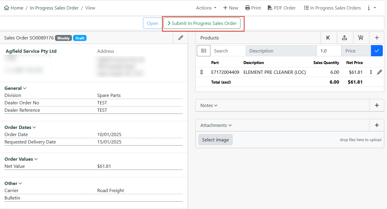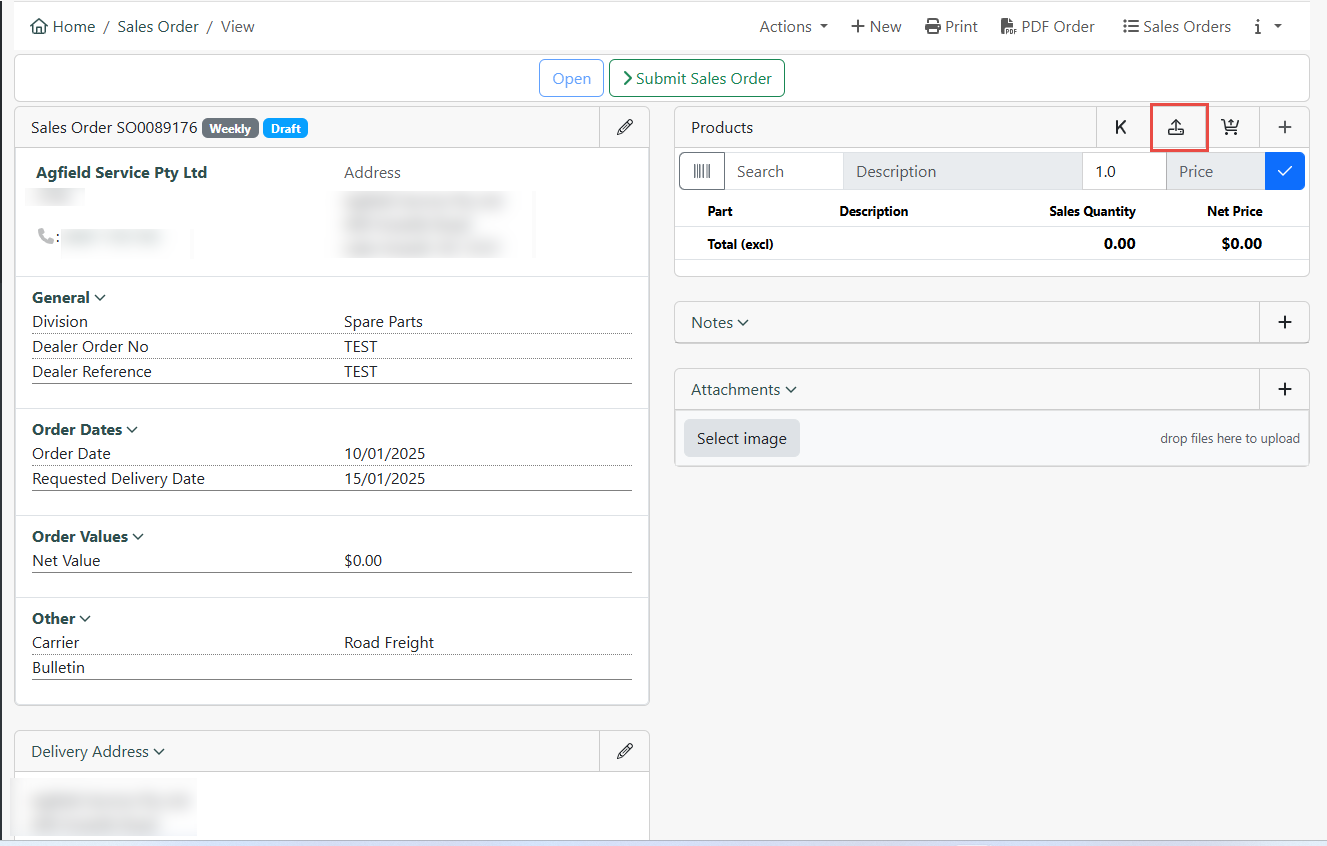 NOTE: Excel File must contain in row 1 the heading "Part" and "Qty" (an example spare part order upload Excel file is attached to this article)