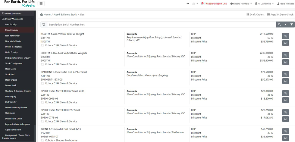 Aged and ex-demo stock will be listed under Dealer Wholegoods > Aged Demo Stock.