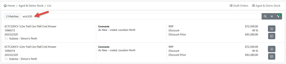 By clicking on the scroll symbol , start entering in the full or partial model, part, or description, & serial number, and it will bring up a list based on the search details entered.
