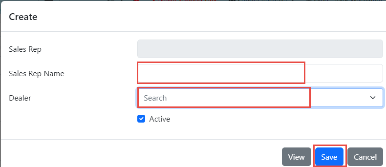 3. Enter the Sales rep full name into the “Sales Rep Name” section and then select the dealership they represent in “dealership” Then click “save”.
