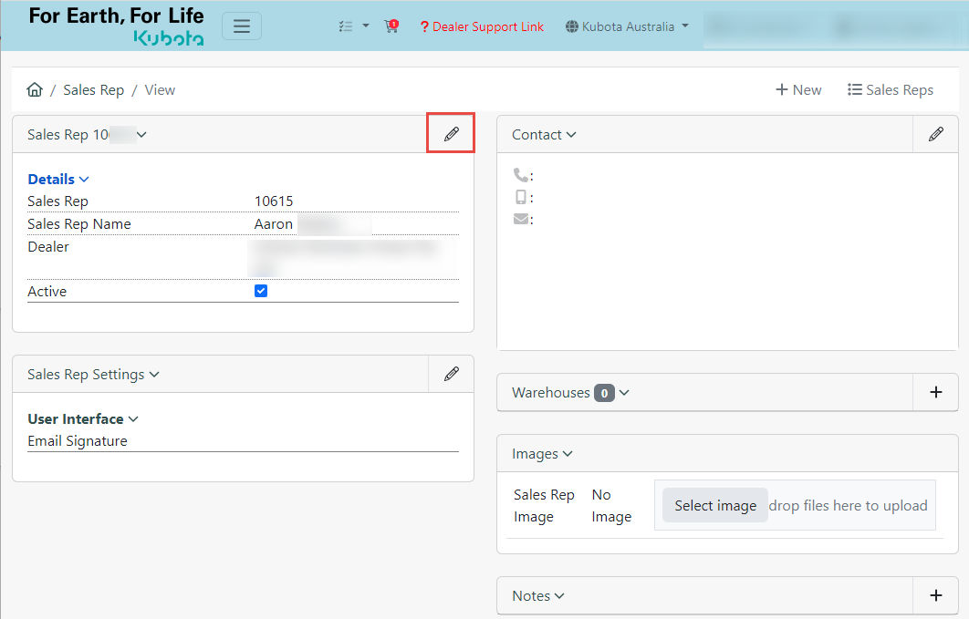 3. Click the "Edit" button for the "Sales Rep" box.
